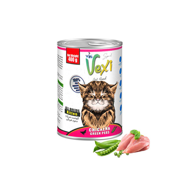 کنسرو بچه گربه | مرغ و نخود فرنگی| وکسی