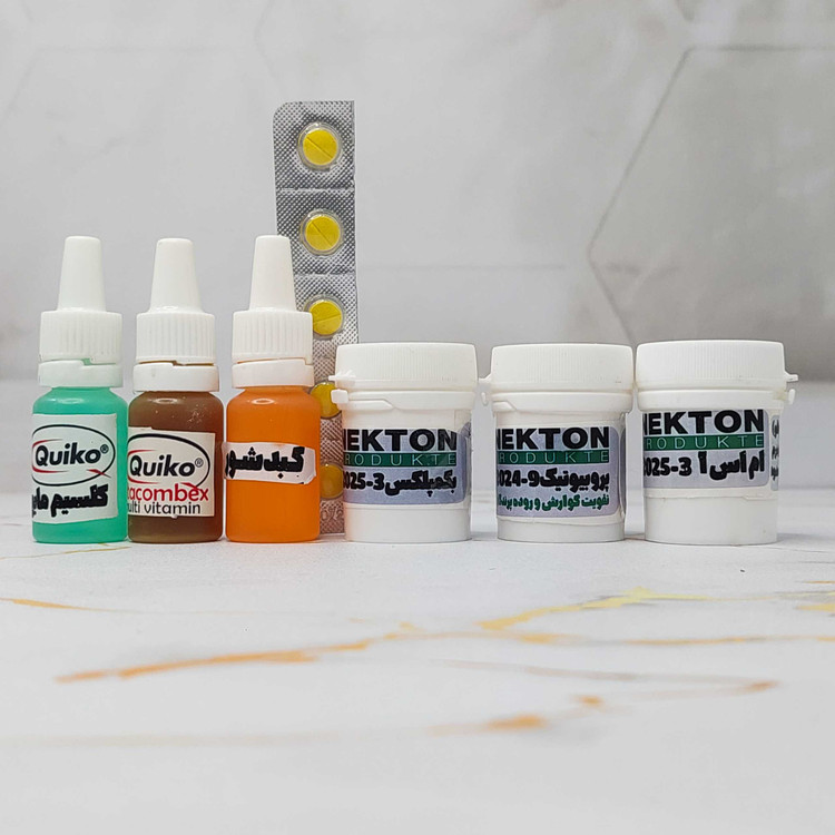 اندازه: ۳ قطره ۱۰ میلی و ۳ قوطی پودری ۱۰گرمی