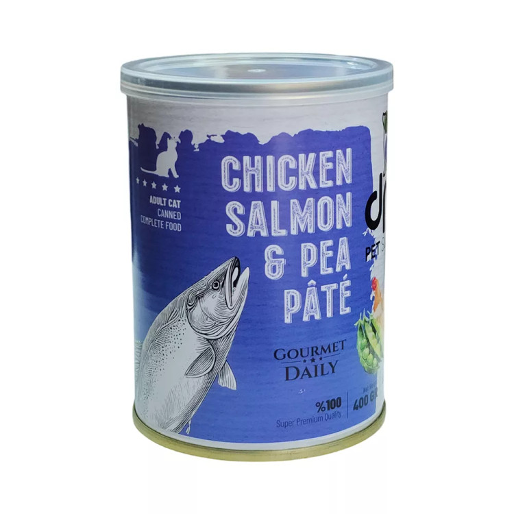 کنسرو گوشت مرغ و سالمون و نخودفرنگی dps