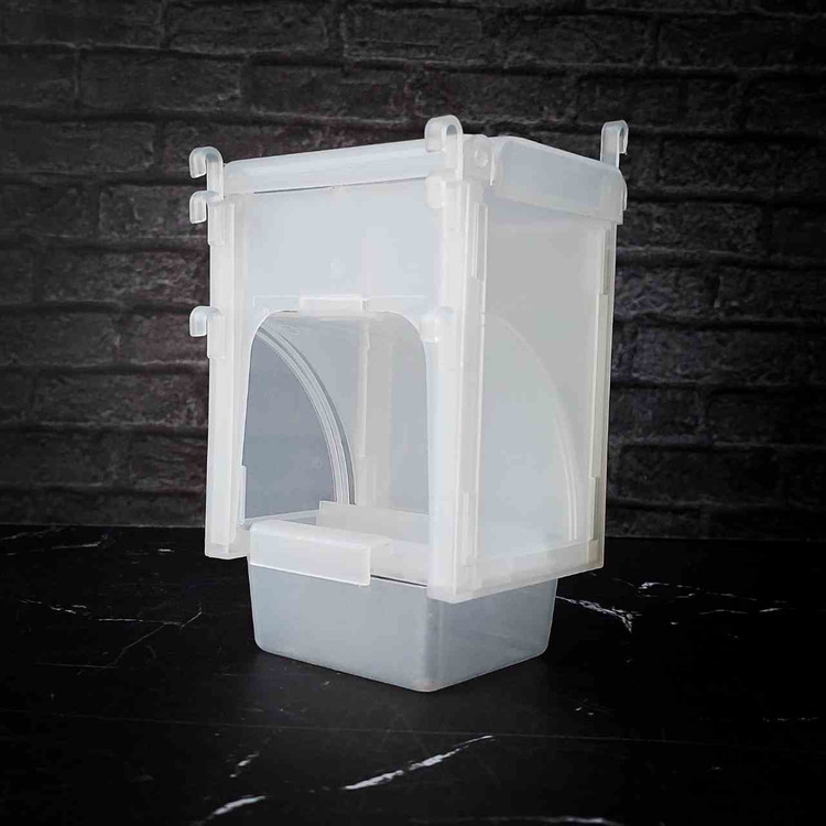 جهت جلوگیری از بیرون ریختن دانه ها و کم کردن احتمال دستشویی کردن پرنده در ظرف